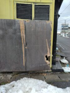 今回のご依頼は飲食店の「倉庫扉の修理」作業(‘ω’)ノ