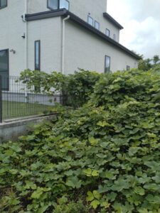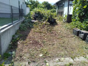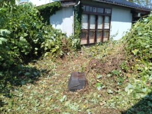 使われていないご実家の周りと、特にお隣様へ伸びきっている草の除去作業。