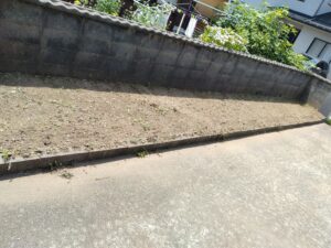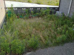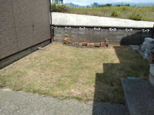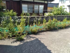 以前、家庭菜園をされていたスペースが雑草で埋め尽くされ、草刈りなどで綺麗にしてほしいとの事。