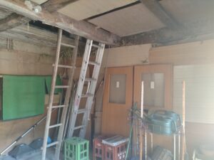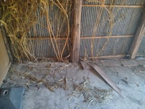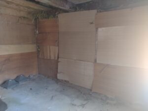 まずは、ベニヤ板を慎重に剥がし、篠竹を除去。