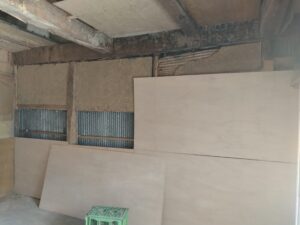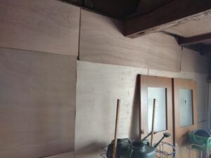 その後、新たなベニヤ板を壁に合わせて貼り付け。
