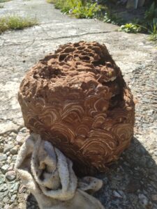 駆除のタイミングが日中だったため、キイロスズメバチの猛攻をしのぎつつなんとか駆除に成功!